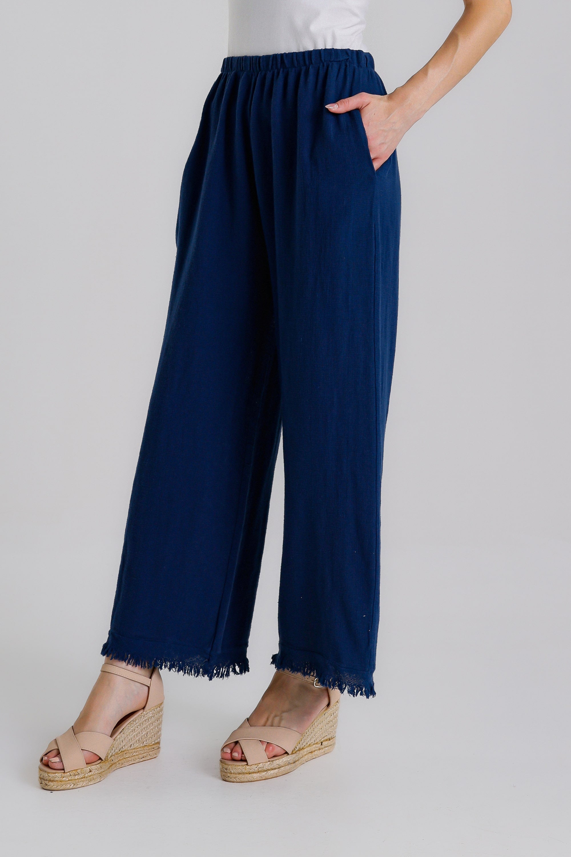 Tillie is perfect for those warm summer days. Her airy breathability and stylistic raw edge ankles are marvelous. Her side-slit pockets give her extra utility for everyday wear. Not to mention, her soft hand-feel will have you instinctually reaching for this pant time and time again! Made in Italy.