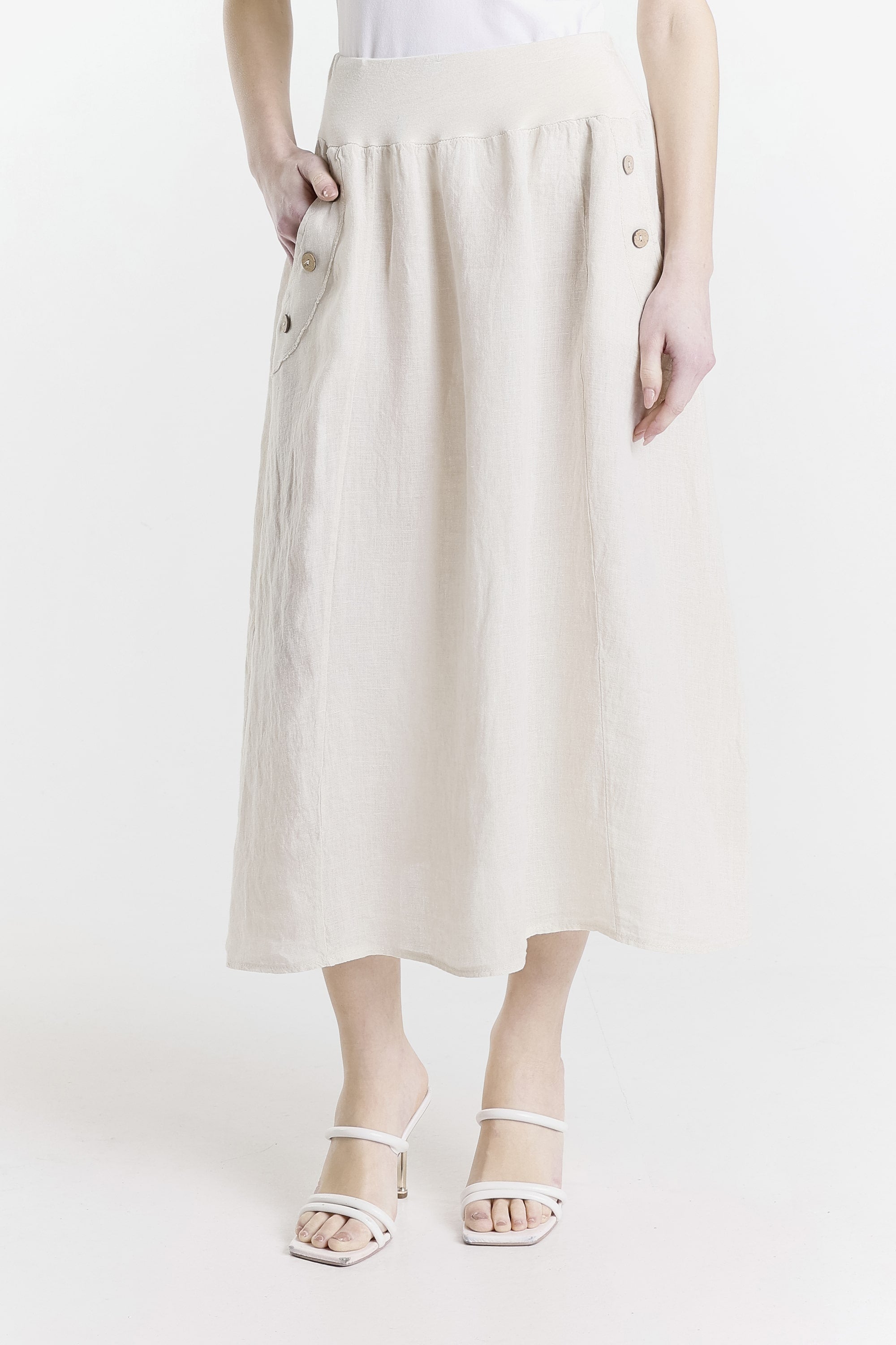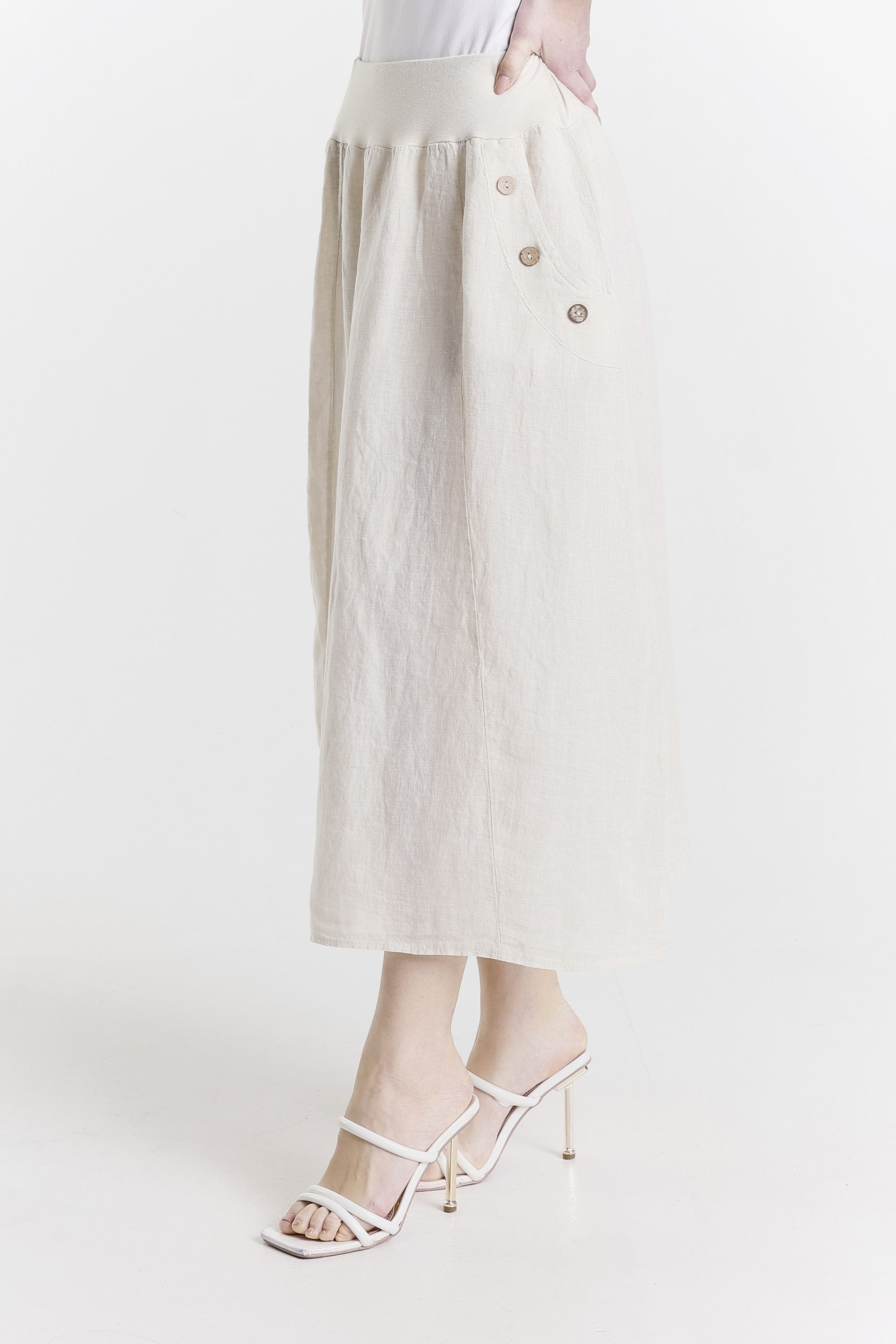 Chris Button Pocket Linen Skirt (SL112)