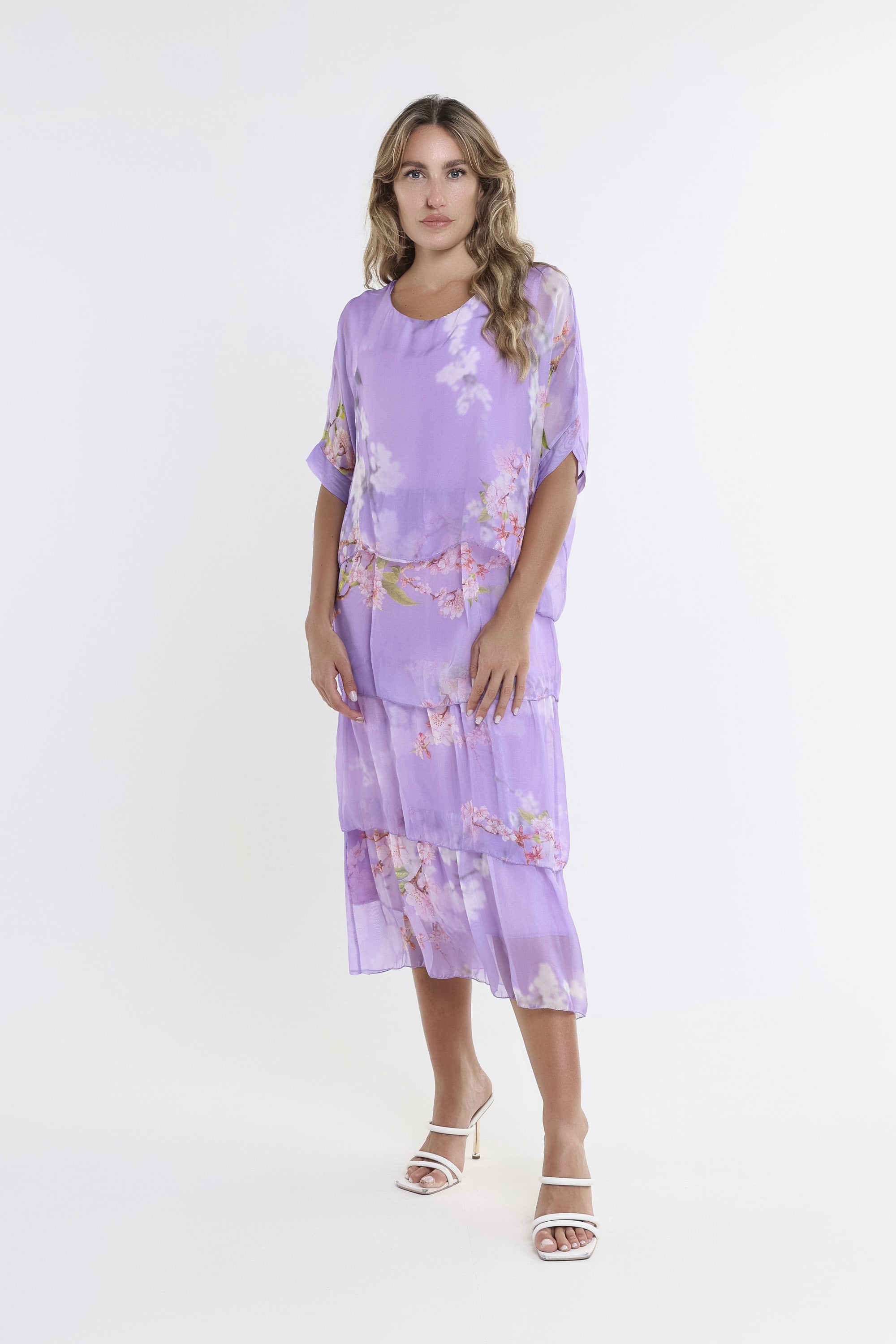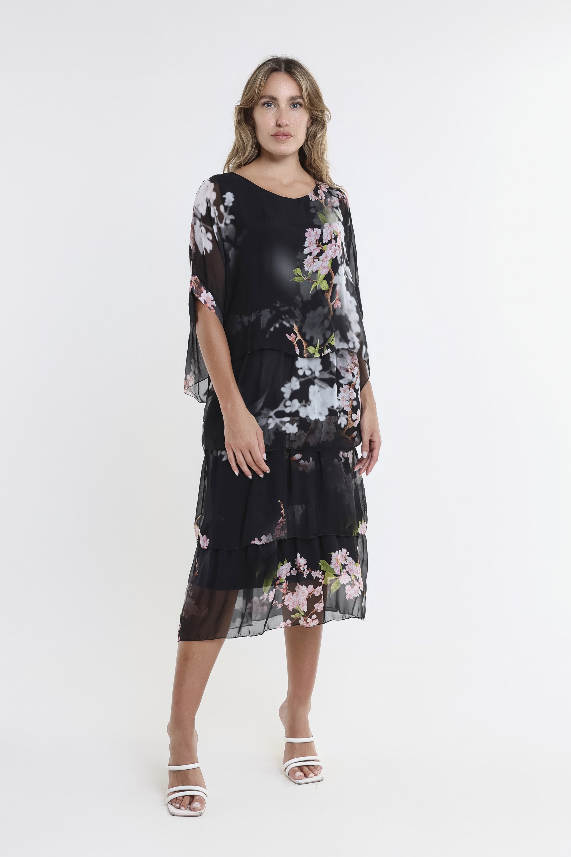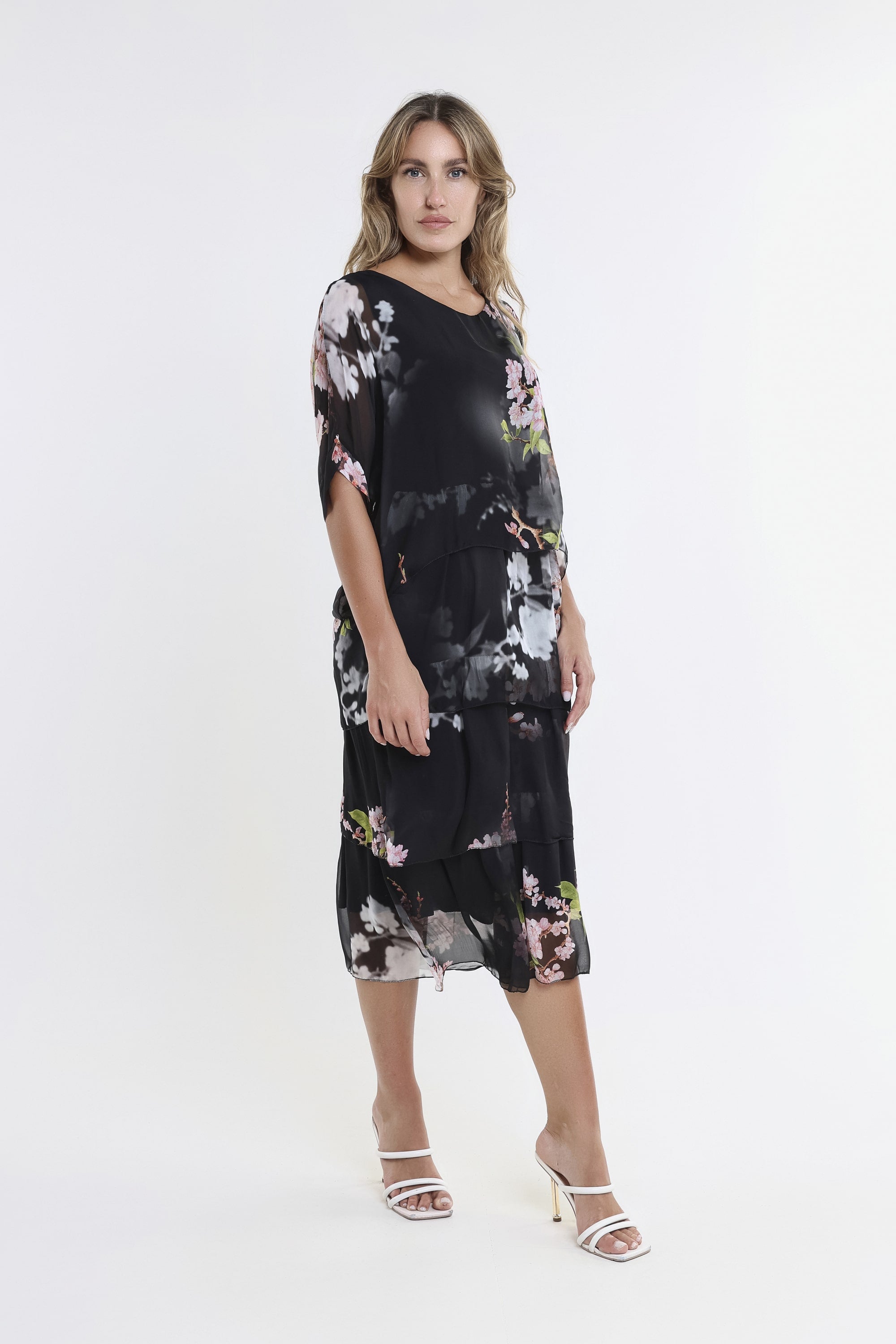 Floral Ava Silk 3-Tiered Ruffle Dress (DQ210F)