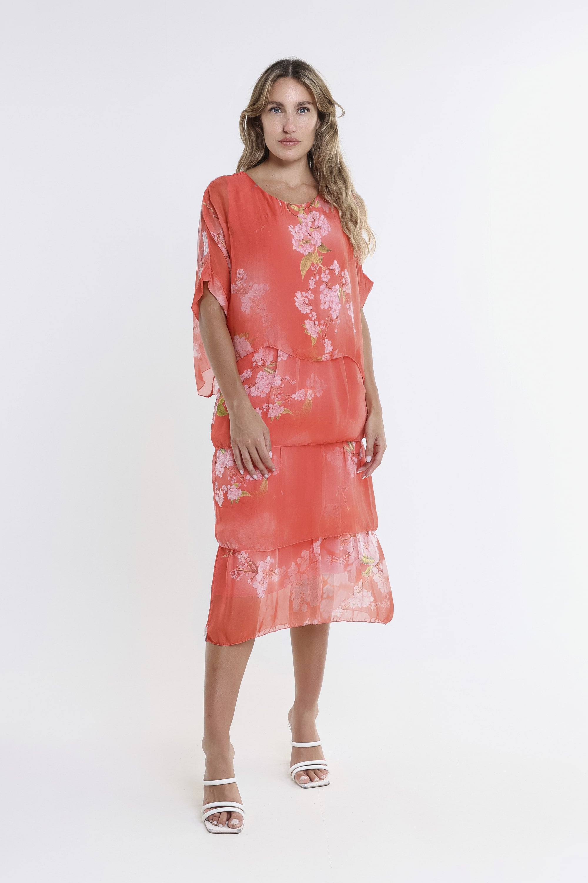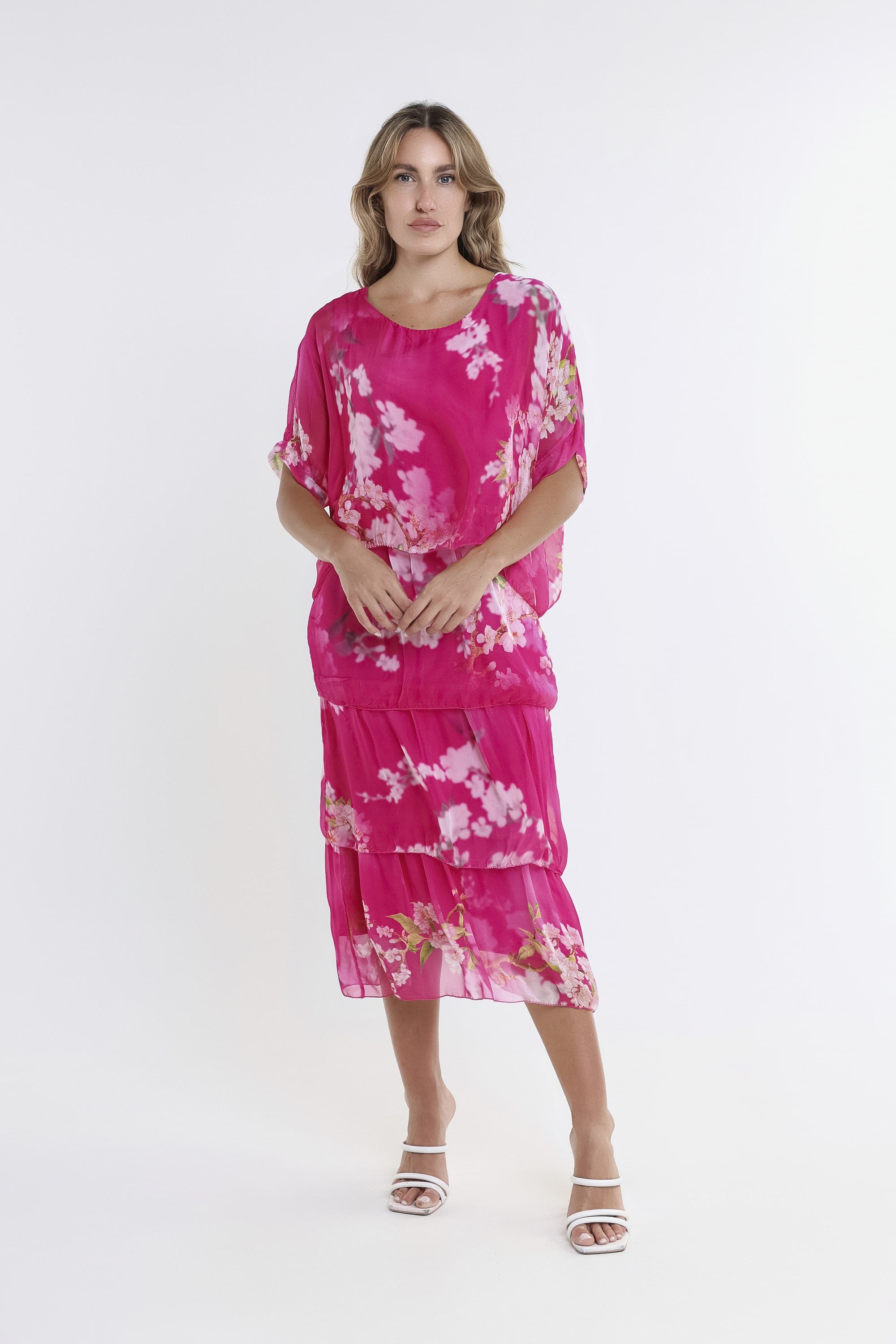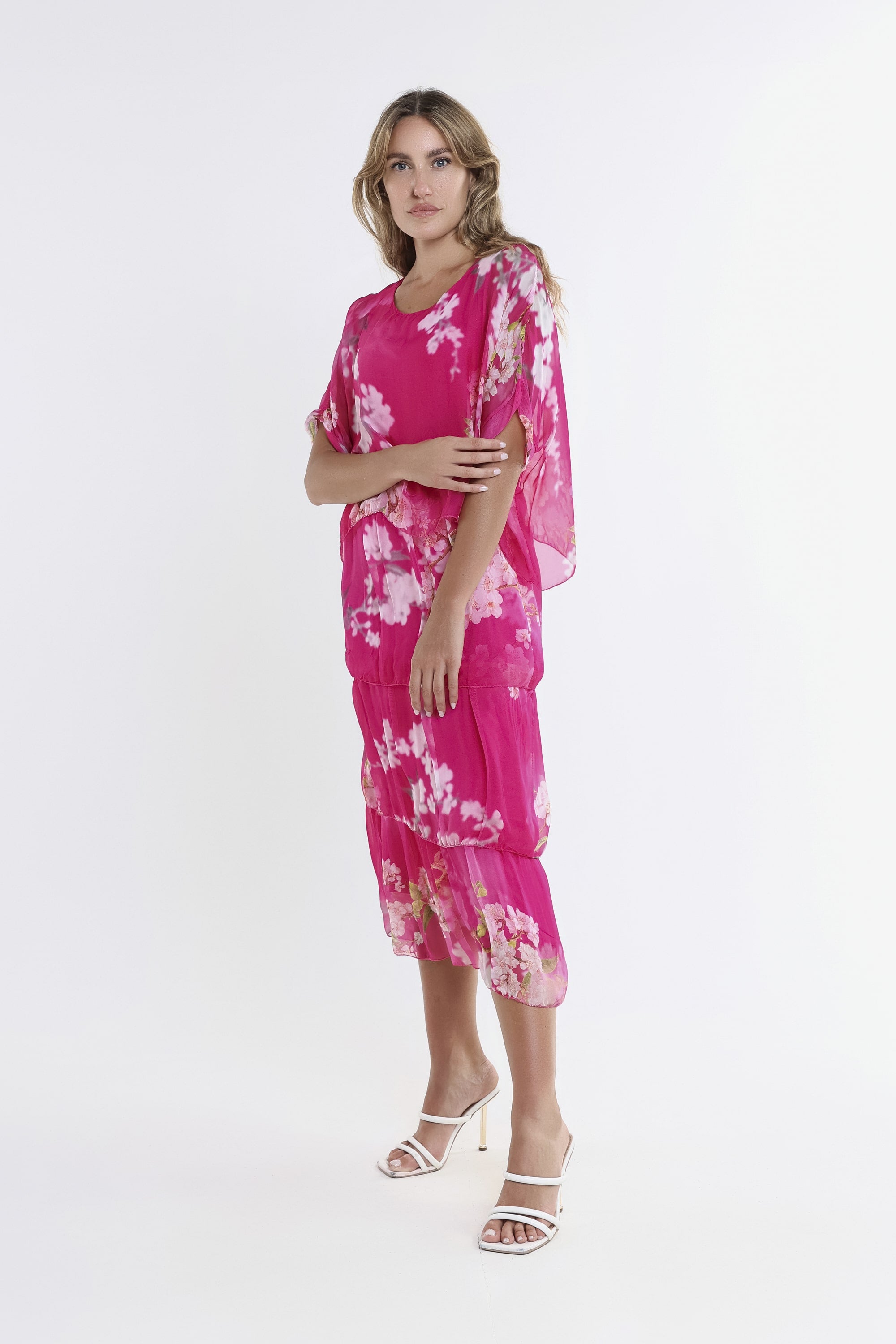 Floral Ava Silk 3-Tiered Ruffle Dress (DQ210F)