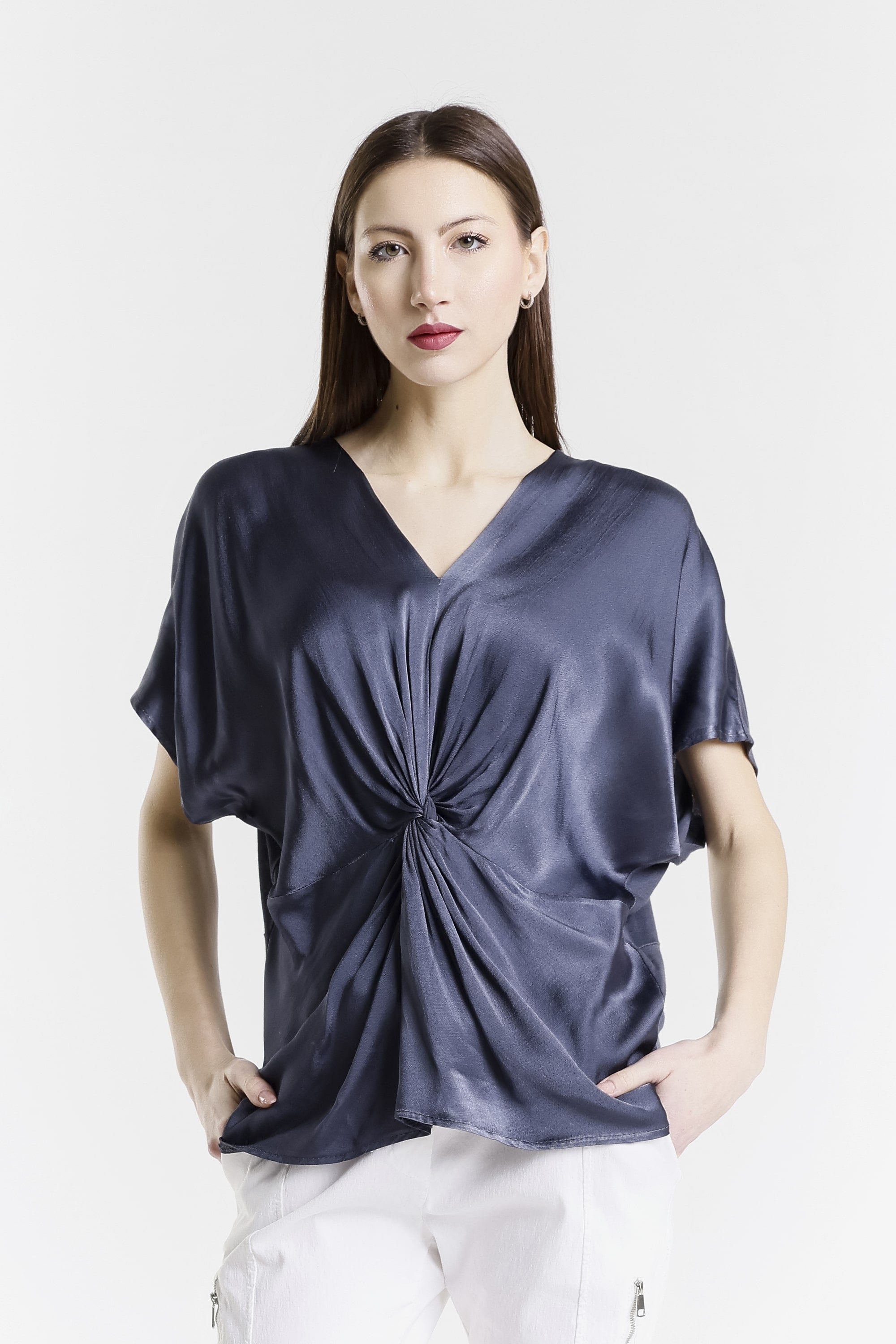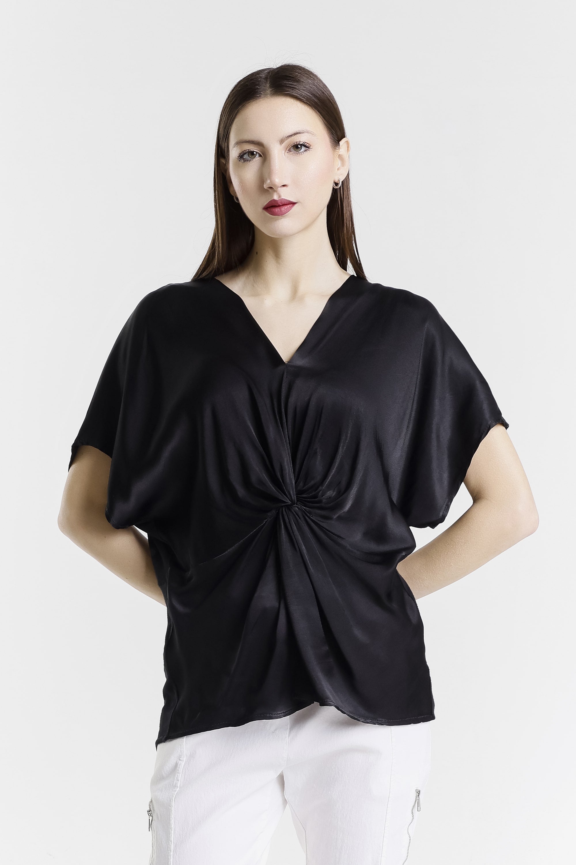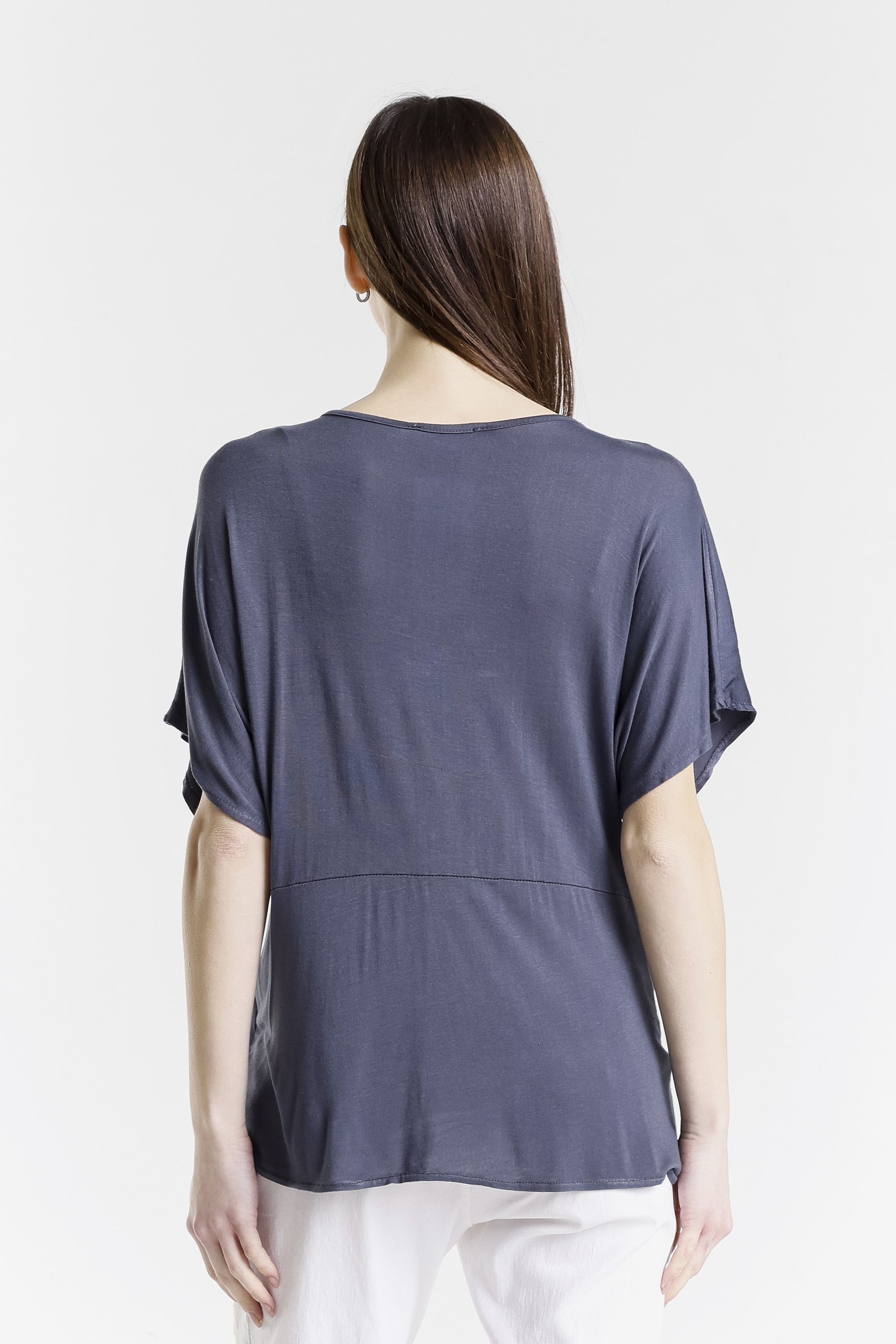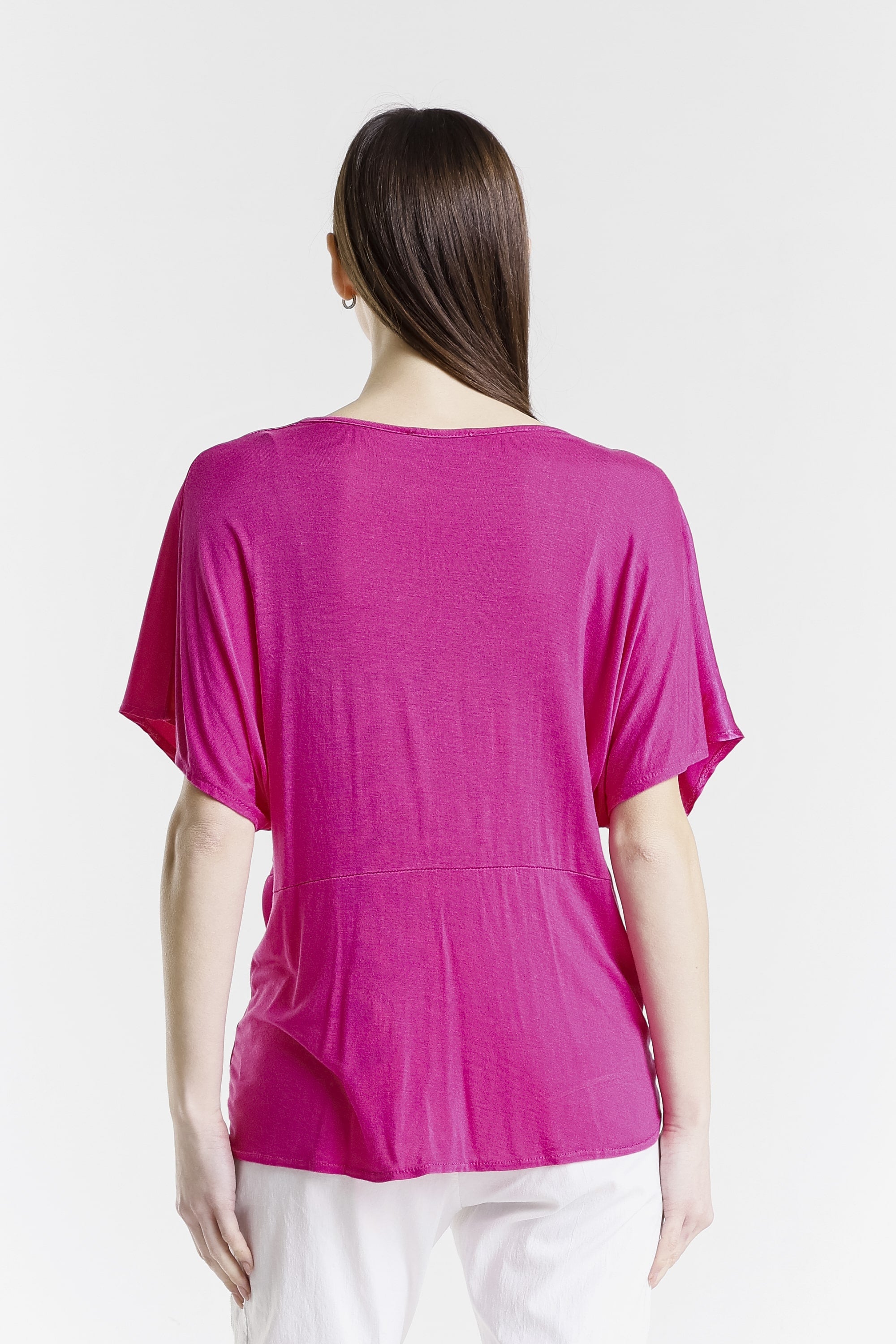 Genesis has a gorgeous front twist and sheen that adds just enough edge to dress up this comfy top! Pair her with our signature pull-on pants and she is perfect for brunch, errands, or a last-minute dinner plans! Genesis has you covered from sunrise to sunset. Made in Italy.