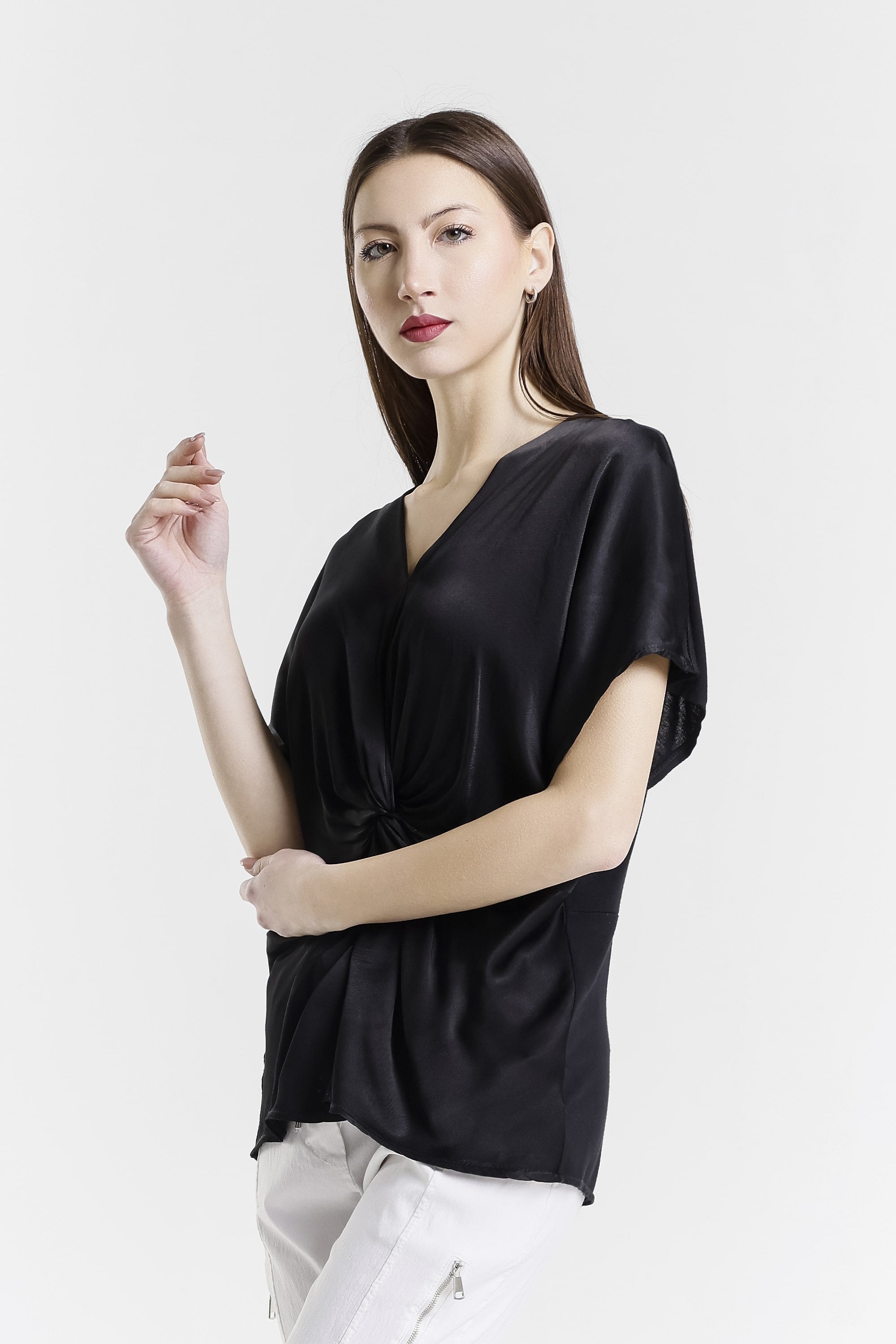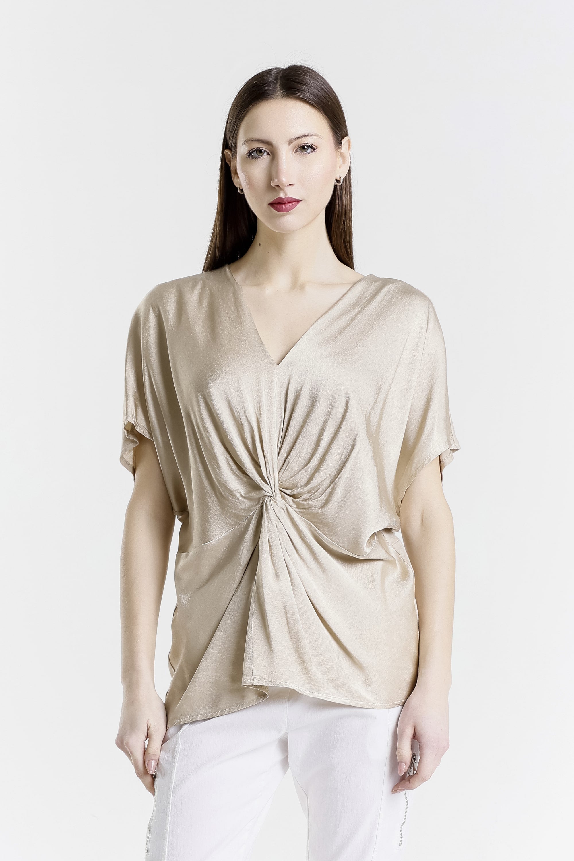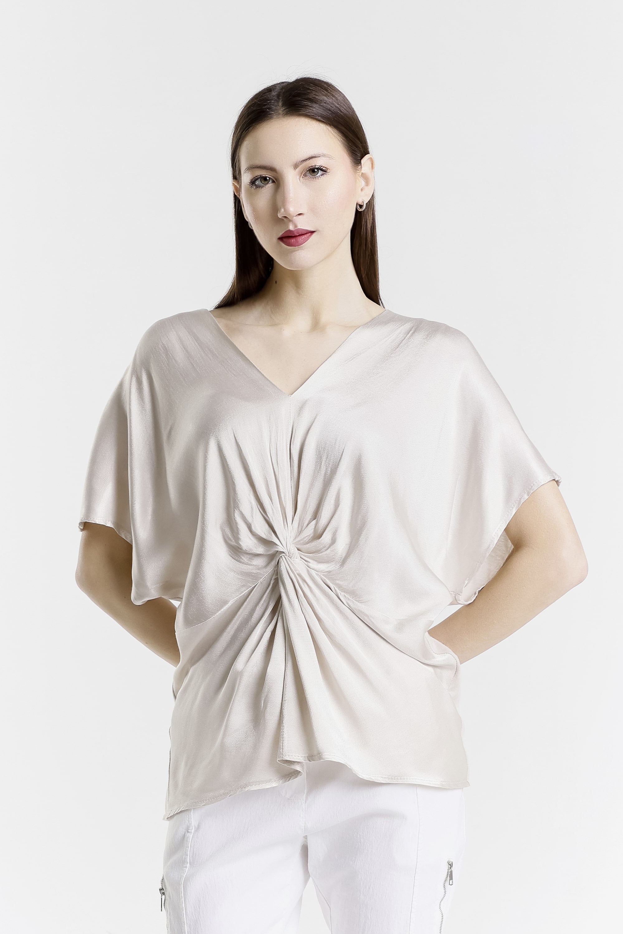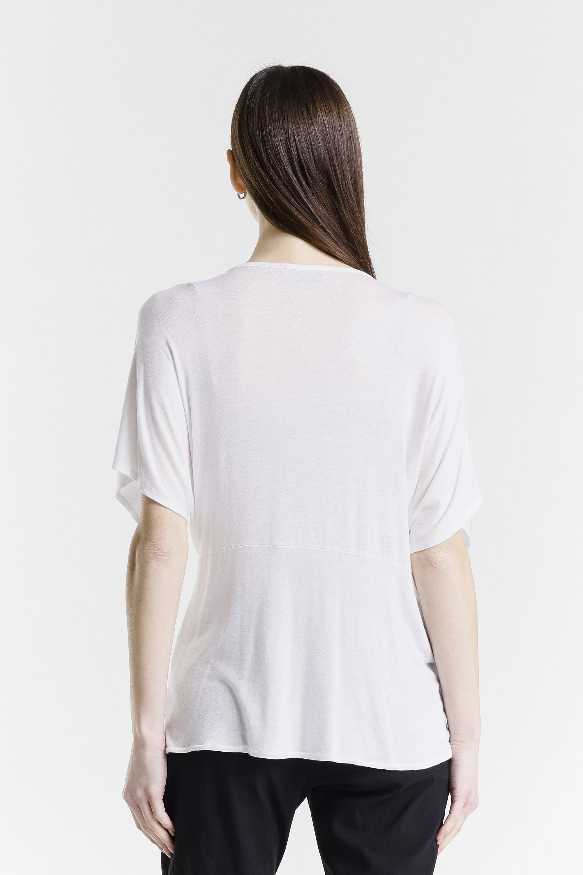 Genesis has a gorgeous front twist and sheen that adds just enough edge to dress up this comfy top! Pair her with our signature pull-on pants and she is perfect for brunch, errands, or a last-minute dinner plans! Genesis has you covered from sunrise to sunset. Made in Italy.