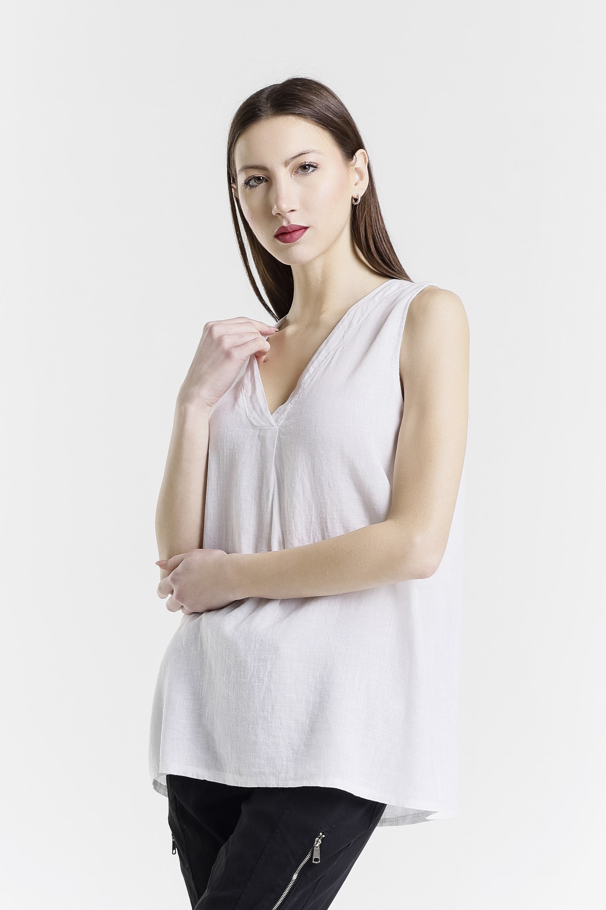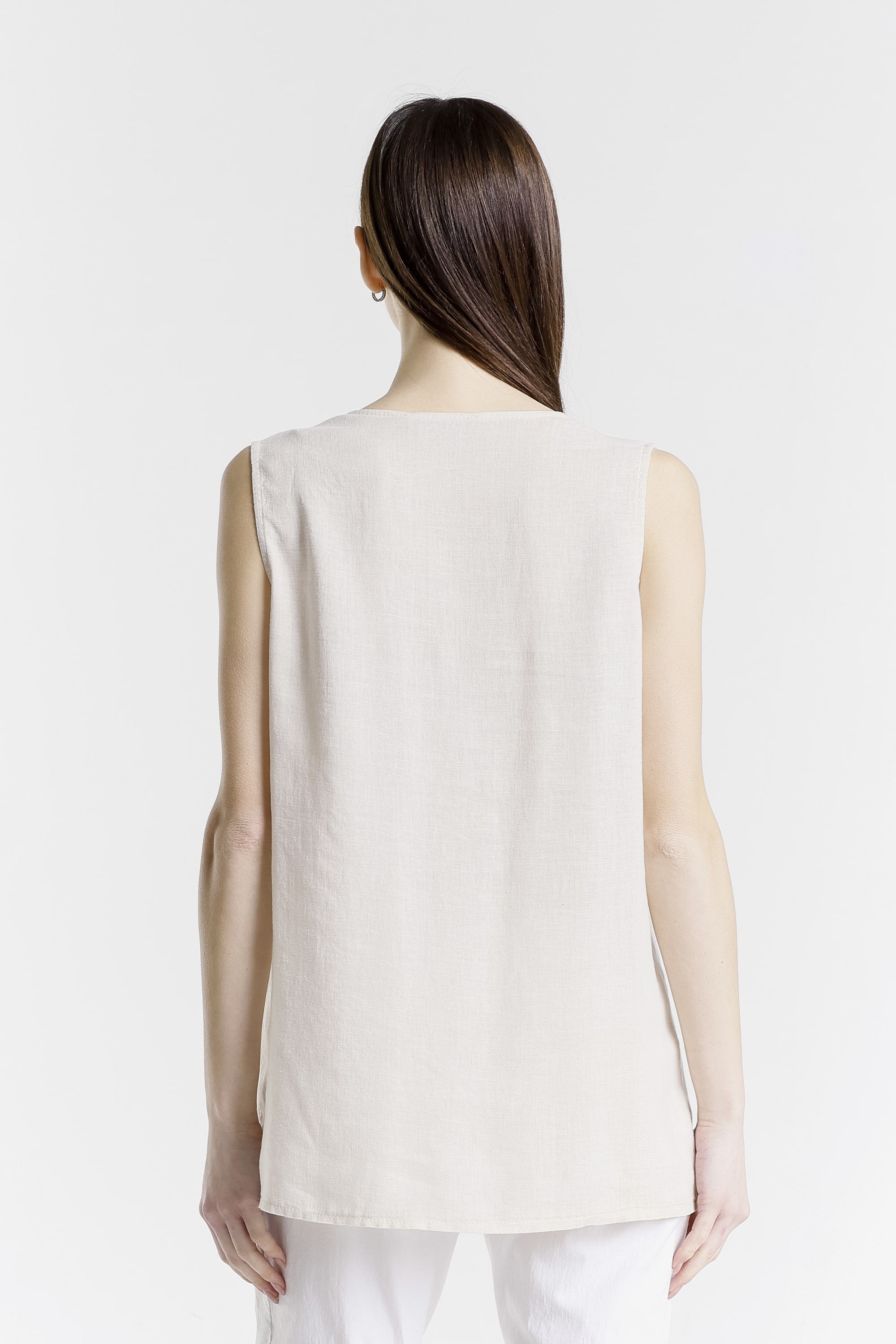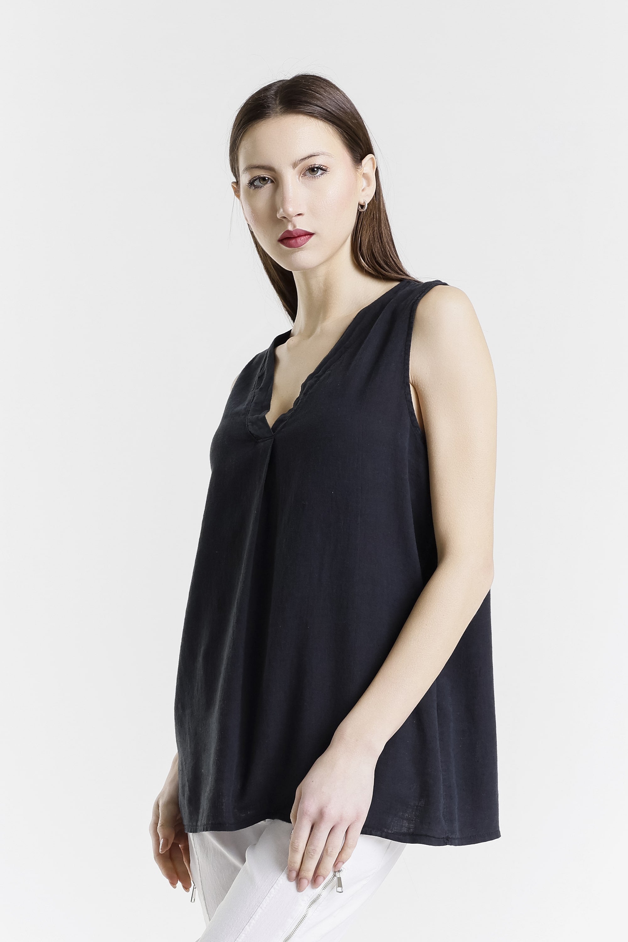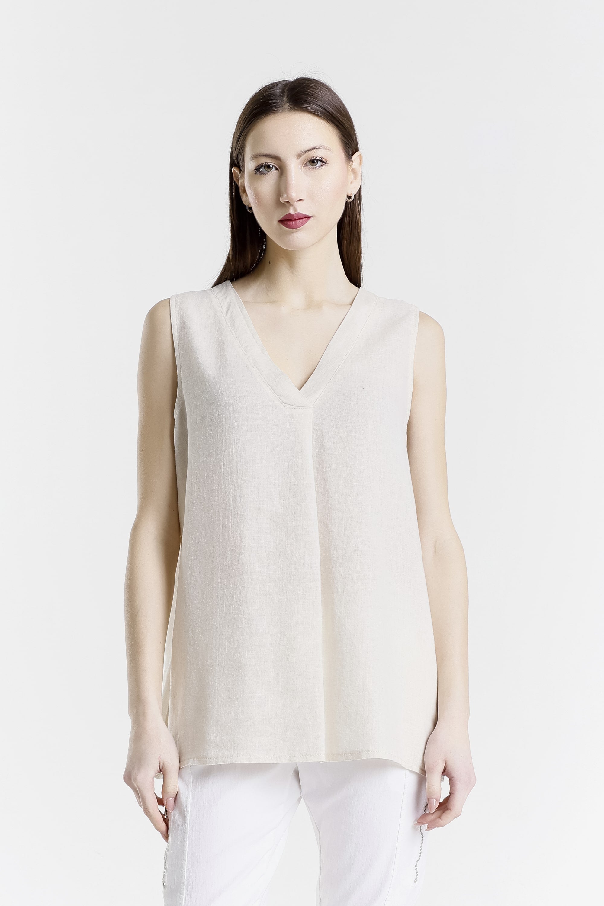 A cool linen blend gives Molly her effortless drape and breathable comfort! Her flattering V-neckline make this tank a timeless staple with a modern edge. She pairs beautifully with casual denim or pull-on pants, and just as seamlessly with flowy silks or tailored linen trousers. You will reach for Molly again and again! Made in Italy.