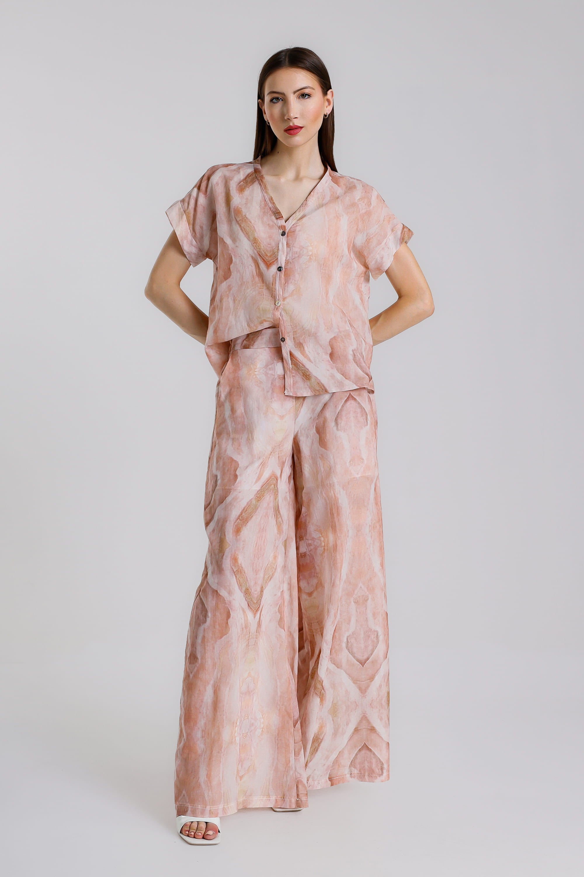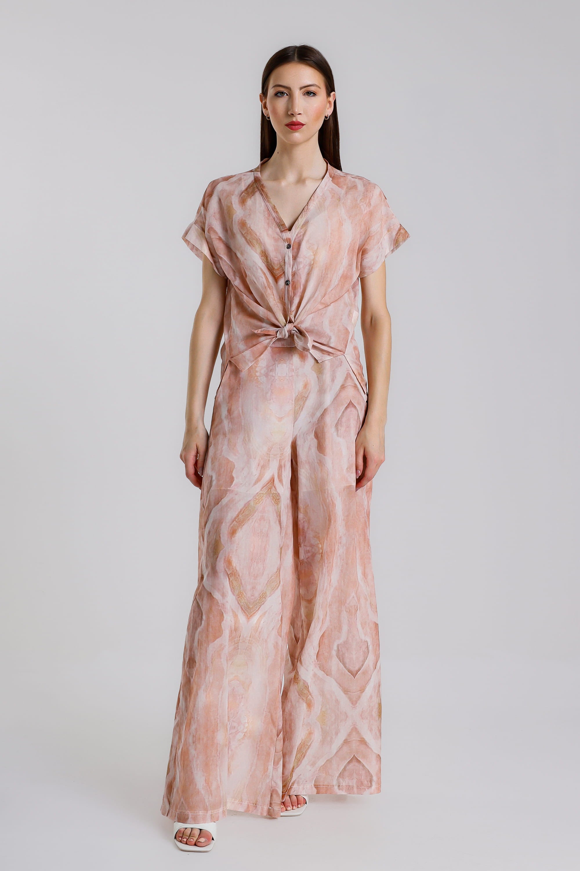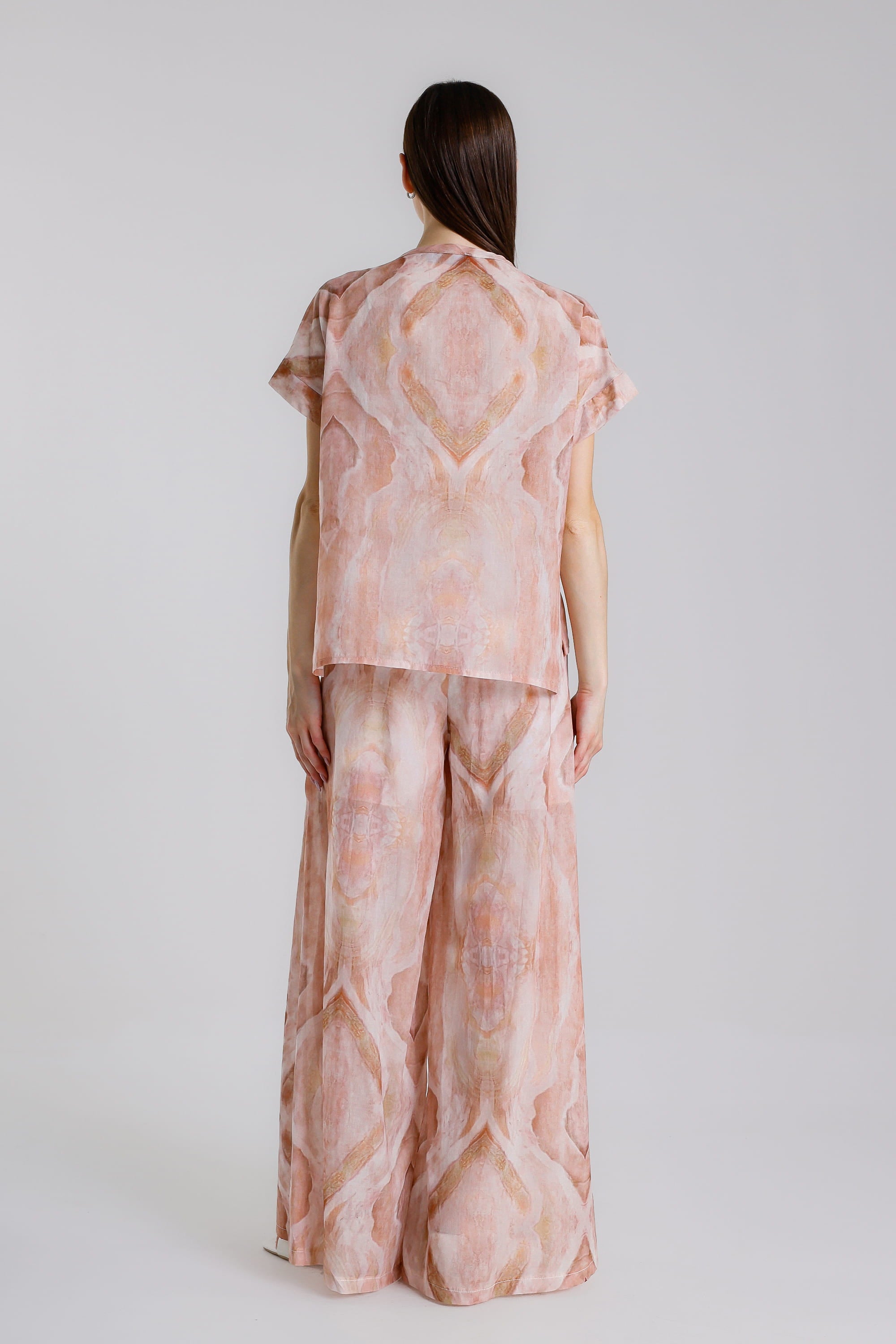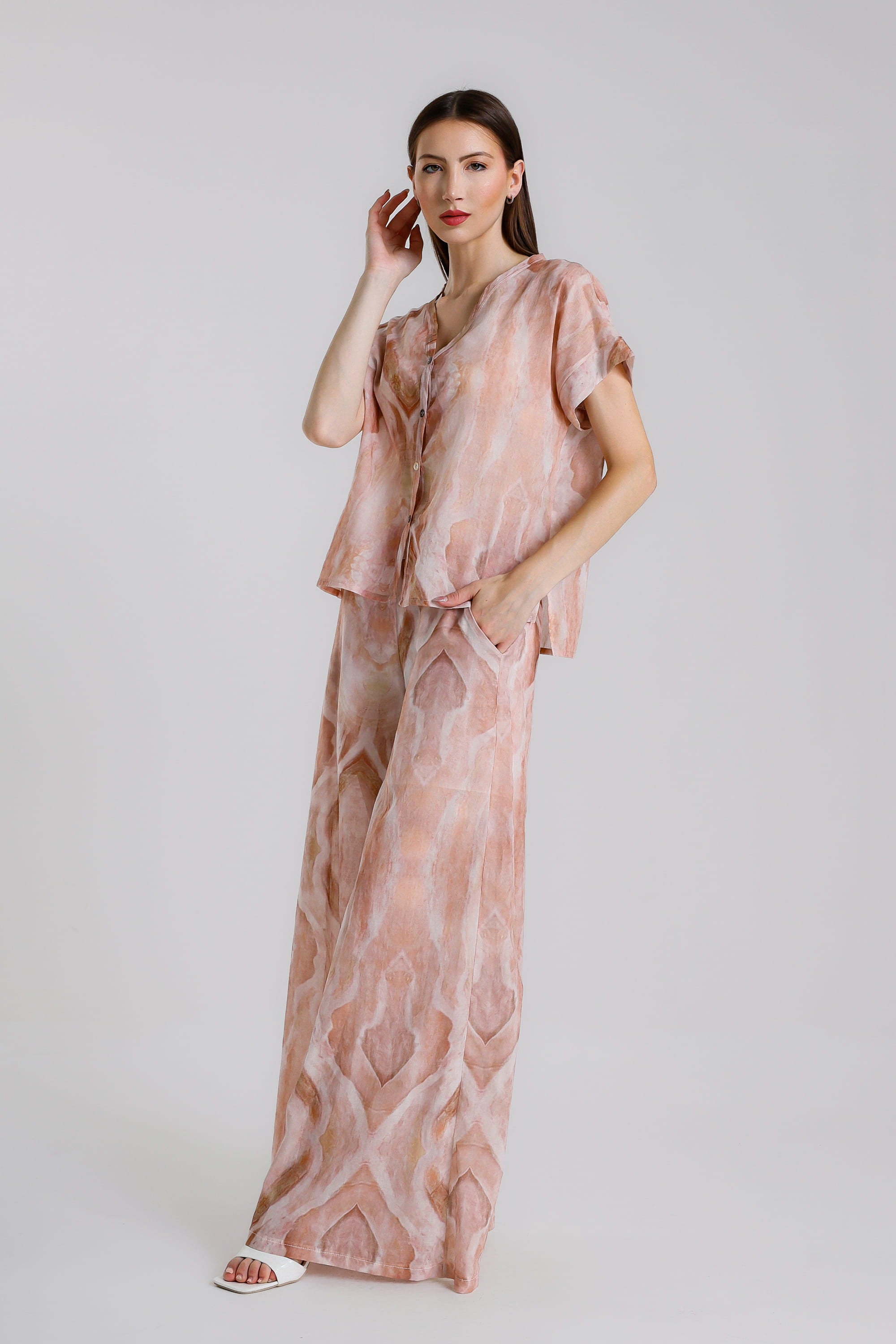 Tracy is simply standout luxury! Crafted from airy cotton voile with a graceful short sleeve that floats just above the elbow. Its clean button-down silhouette and a gorgeous circle print evoke effortless elegance, designed to breathe with you from morning light to golden hour. Pair her with our signature Sabrina pant for a refined look! Made in Italy.