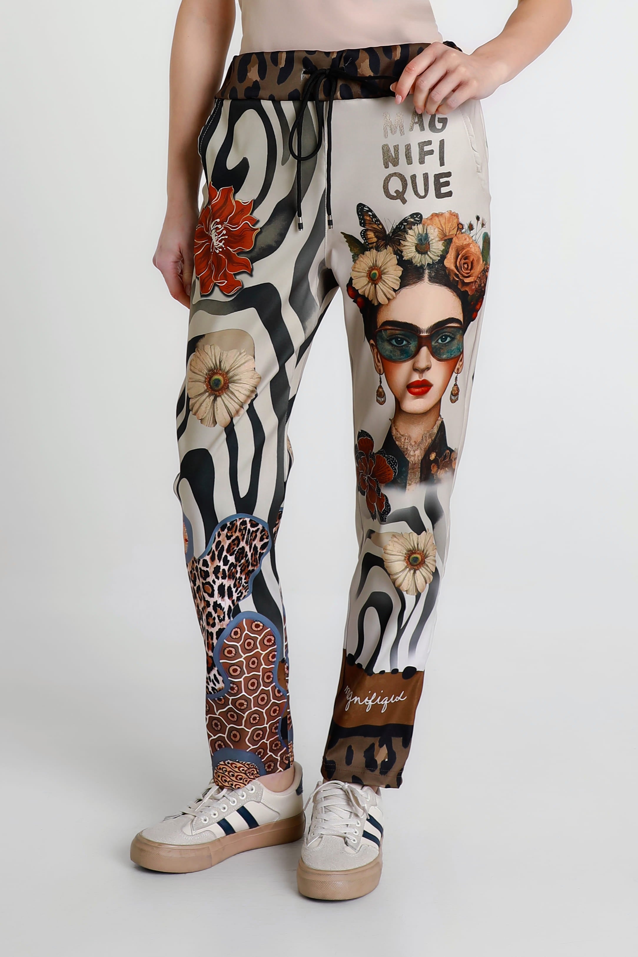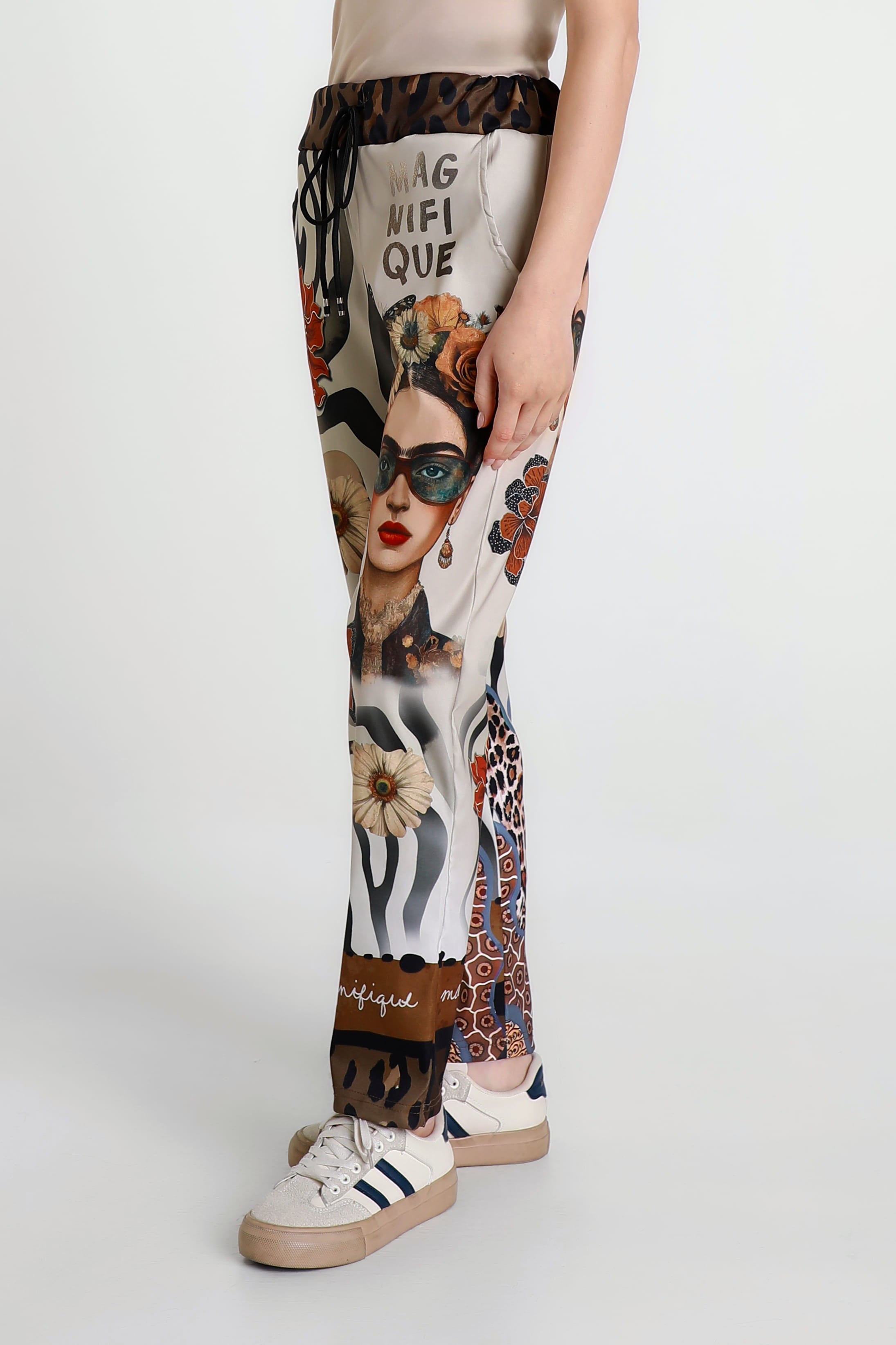Cool and comfy are what you will be in these unique print pants! Add some style and repel negativity all while sporting a fabulous appearance. Soft and stretchy with a tie waist and lots of versatility. Cuff up and style with a Tee and sneaks or leave long and dress up with a silk top and sandals. Made in Italy.
